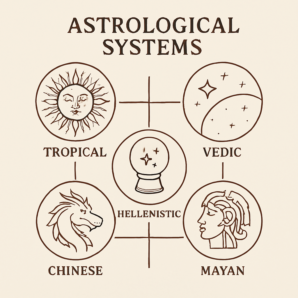 This guide breaks down the major astrological traditions- Tropical, Vedic (Sidereal), Hellenistic, Chinese, and Mayan — and explains how they can all be “right” depending on the lens you’re using. Think of it like different spiritual dialects describing the same sky.