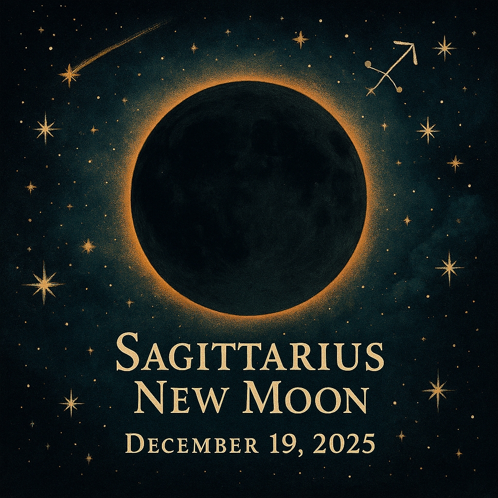 On December 19, 2025,(8:43 pm EST) the final New Moon of the year arrives in Sagittarius, the sign of truth seeking, adventure, and fiery optimism. This “Black Moon”…The second new moon in a calendar month, is a rare and potent moment of rebirth, release, and radical realignment!! Sagittarius shouts out and asks: What do you believe in now? What truth are you ready to live? With Venus, Saturn, and Neptune all dancing around this lunation, we’re invited to dream big, love bravely, and ground our visions into reality.